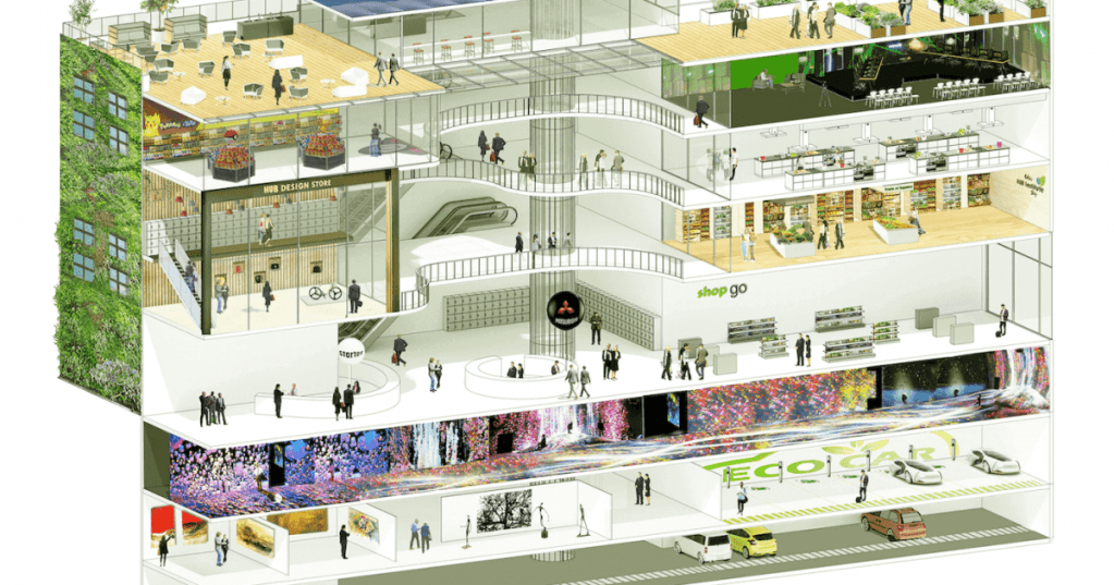 The elevator ride ends, the doors open, and the “student couple” is greeted by the First Place. Stepping out of the elevator, they navigate through various concrete hallways, passing by the doorways to the nearby sewer lines until they come across the one door that will take them to a secret entrance disguised as part of a wall. Opening it, they discover the Service Entrance to the Maglev Subway Station of this Suburbia. But they did not find just any ordinary subway station: the student couple discovered a Deep Underground Shopping Center (DUSC) for the several Homeworker Details, POE (Public-Directed Enterprise), Homebuilder Command, NSEs (National-Socialized Enterprise), and Military-Industrial Complex-backed EGOs (Extracurricular Guild Occupations).