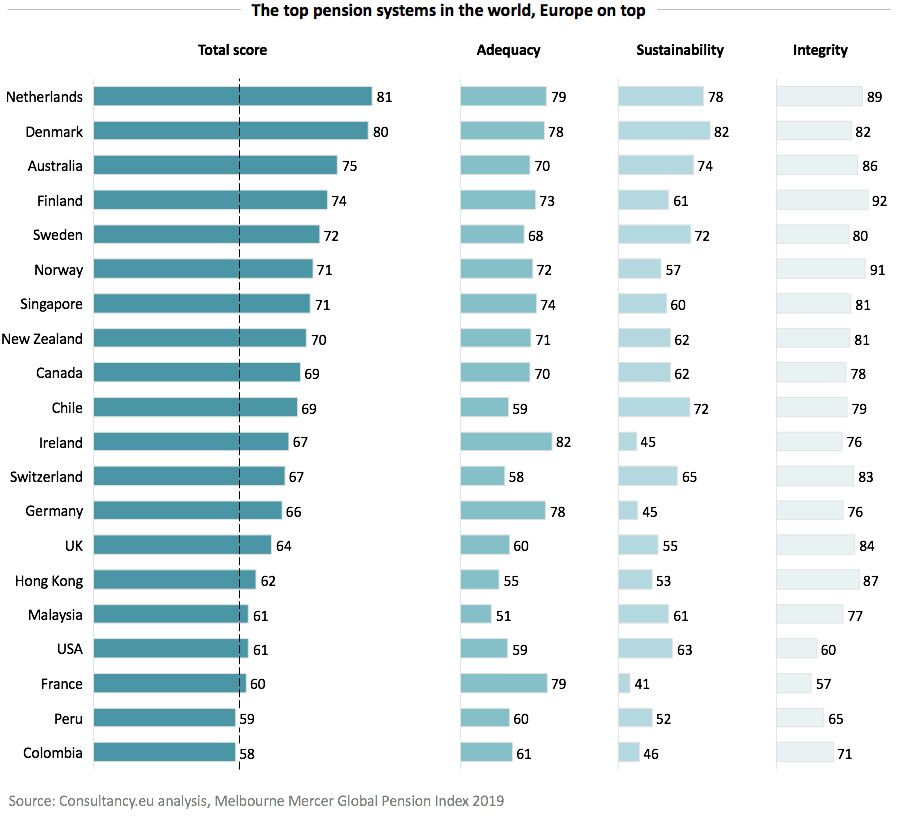 To begin, it is important for readers below retirement age to understand the significance of Pensions. A Pension refers to the Quantity of Kapital that is put into an account throughout the duration of a recipient’s employment. The Quantity of Schuld comes from the same Quantity of Kapital that the recipient is expecting to be there when they retire, hence the recipient’s status as a ‘retiree’ or ‘pensioner’. Under the Incentives of Supply and Demand, the Pensions of most countries can be organized into a set of Pillars that have much to do with a social safety net to keep people from seriously entertaining Pure Socialism: