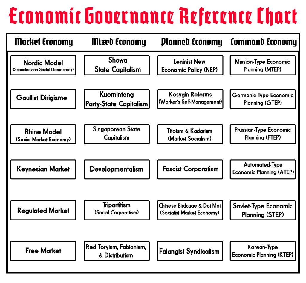 Just try to imagine for a moment an alternate world order where all of the national economies are Planned/Command Economies and there are no Market/Mixed Economies to speak of. These Planned/Command Economies cover a broad spectrum to encompass different variations of Socialism and Corporatism, with enough left for the occasional strain of Syndicalism. What made Syndicalism so different from Socialism and Corporatism was that it envisaged economic life being organized around national syndicates of labor unions that were in turn governed by the State. Whichever one happens to be the case the State is still going to be administering them and controlling the national economy regardless.