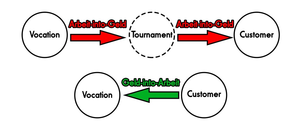 This diagram describes the two opportunities where any given economic activity can create Arbeit and the only one involving a direct transfer of Geld between hands.