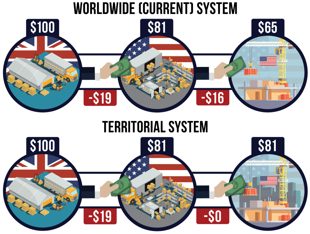 The US taxation system on this particular matter of international trade, in its Jeffersonian conception, is a hybrid between a Worldwide Taxation System and a Territorial Taxation System. One of the goals of the Trump tax cuts in 2017 was to assist in the shift away from the hybrid model and toward a pure Territorial Taxation System. The belief was that the tax cuts would pave the way for further economic reforms to realize that particular redistribution of Kapital. But because Trump never got reelected in 2020, the rest of that endeavor never came to fruition.