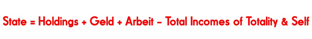 As for the Council State, its equation involves the sum of “Holdings,” “Arbeit,” and “Geld,” subtracted from the “Total Incomes of Totality and Self.”