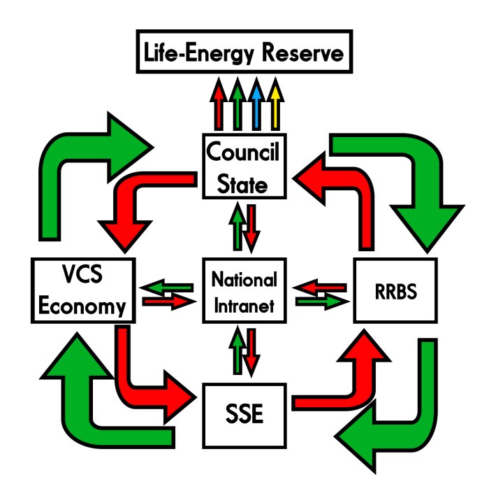 It would be ignorant not to realize that Digital Arbeit, Digital Geld, Military Arbeit and Military Geld, NSFIs and Work-Tenures represent the supplementary contributions to the Life-Energy Reserve by the Totality and the Council State. The National Intranet, as part of the VCS Economy’s Information Sector and under the oversight of the Ministry of Science and Technology, and the Reciprocal-Reserve Banking System are just as capable of creating national wealth. The same assertion can also be extended to the Military-Industrial Complex.
